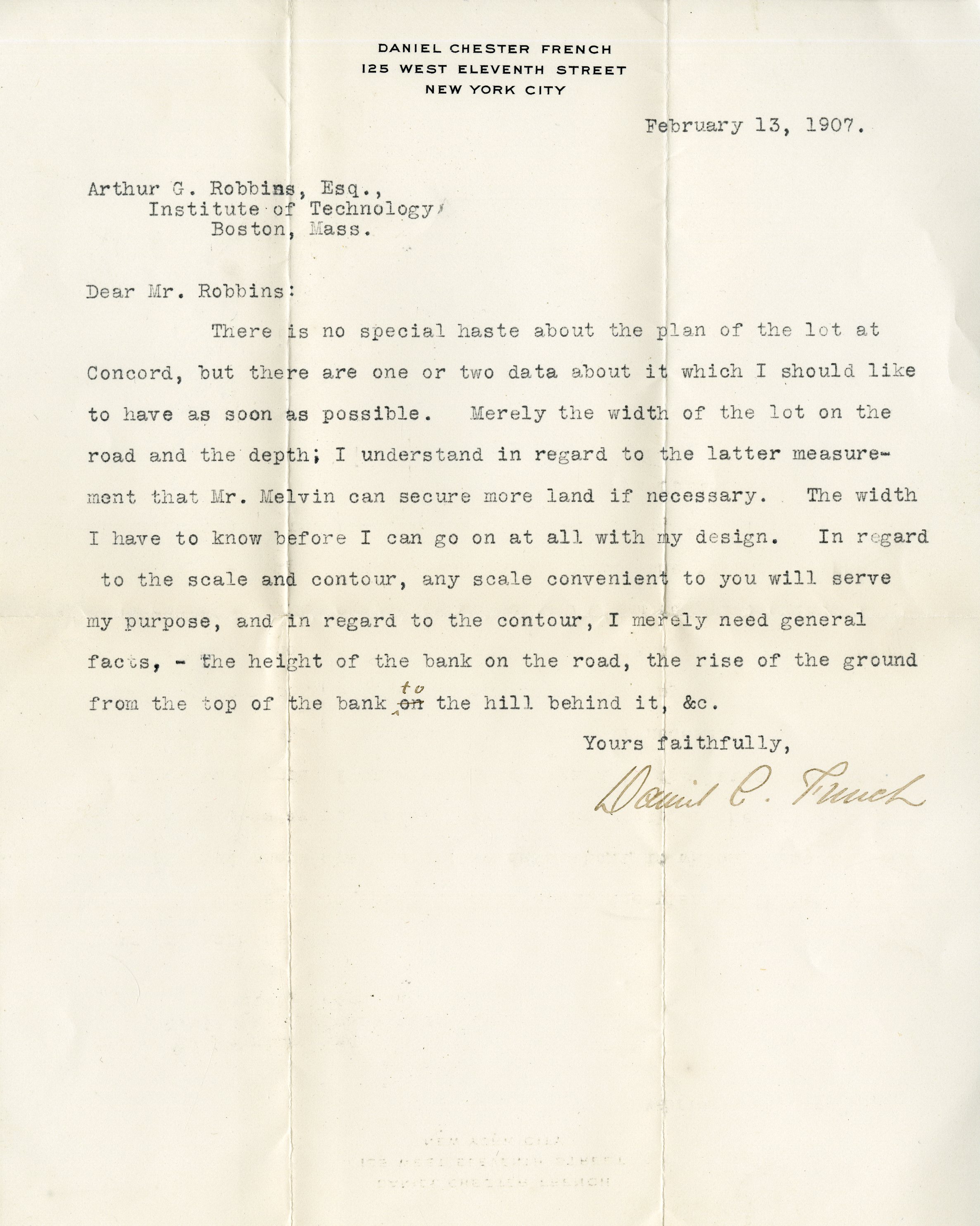 Daniel Chester French, “Letter from Daniel Chester French to Arthur G. Robbins,” William Munroe Special Collections at the Concord Free Public Library, accessed December 24, 2025, https://www.sc.concordlibrary.org/items/show/4120.