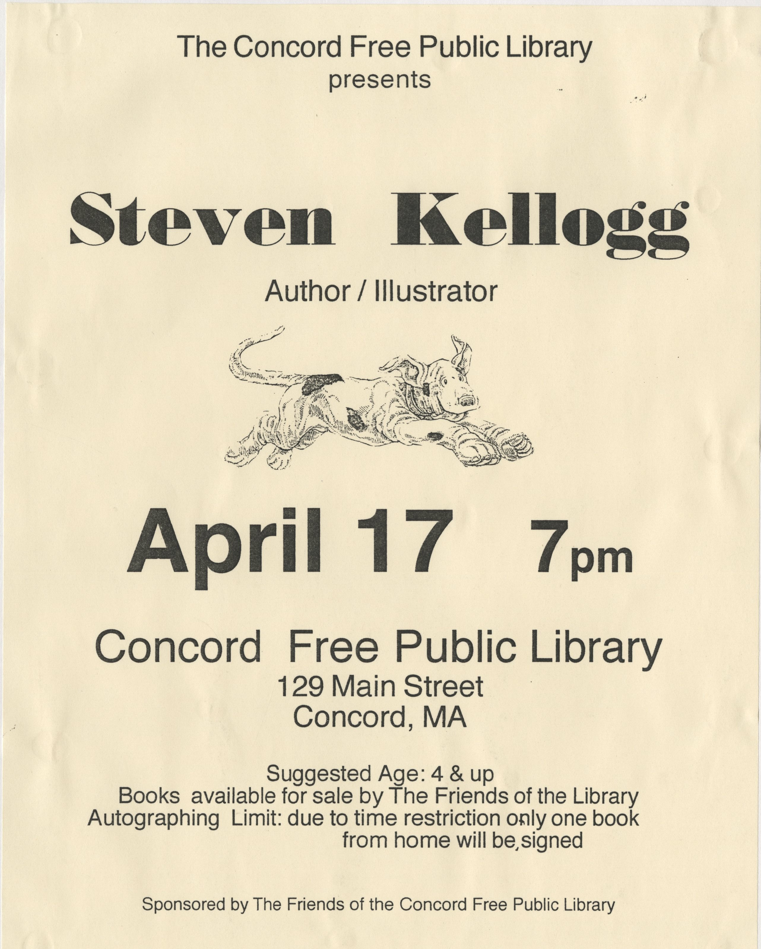 “Steven Kellogg visit,” William Munroe Special Collections at the Concord Free Public Library, accessed December 18, 2025, https://www.sc.concordlibrary.org/items/show/4647.