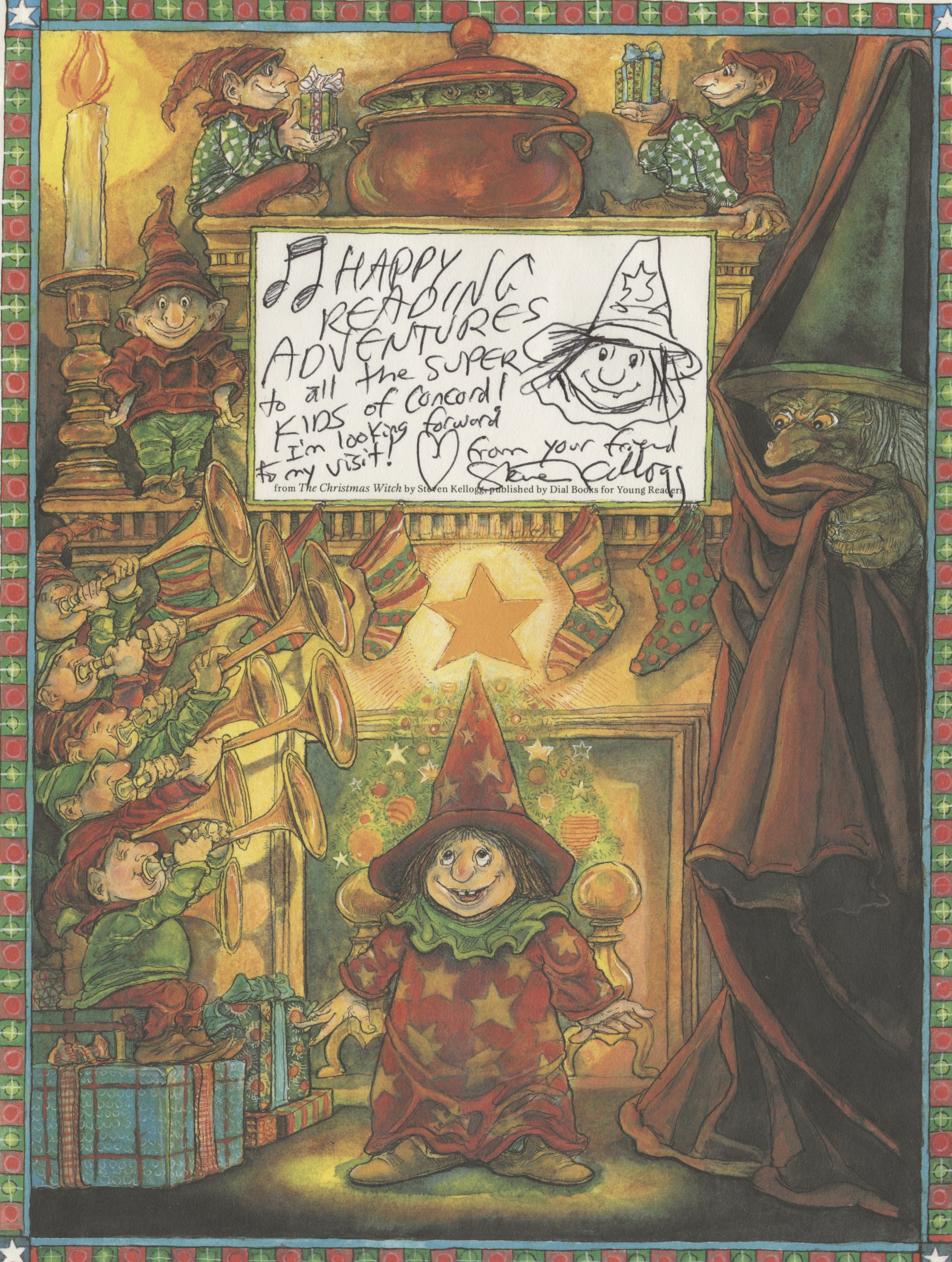 "HAPPY READING ADVENTURES to all the SUPER KIDS of Concord! I'm looking forward to my visit! [heart] from your friend Steve Kellogg."