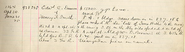 This image documents the Damon-Smith partnership and comes from lawyer Charles Hosmer Walcott’s record of title searches for properties in Concord and elsewhere.