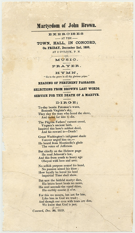 “John Brown Memorial Service Broadside,” William Munroe Special Collections at the Concord Free Public Library, accessed December 26, 2025, https://www.sc.concordlibrary.org/items/show/5021.