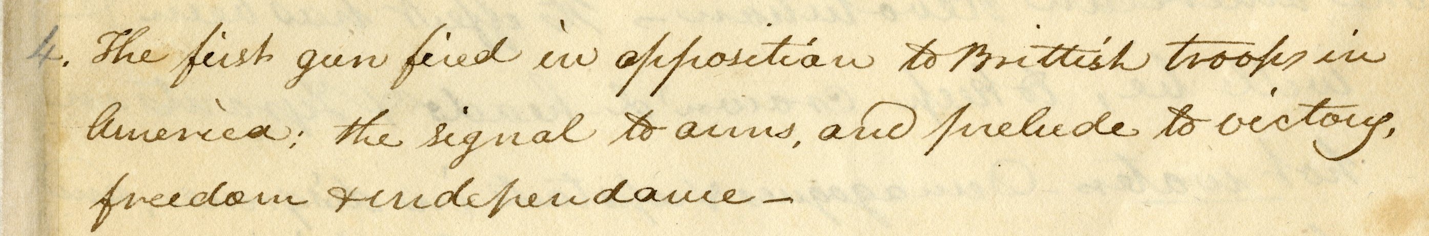 1825 Committee of Arrangements , “Toast to the First Gun Fired,” William Munroe Special Collections at the Concord Free Public Library, accessed December 16, 2025, https://www.sc.concordlibrary.org/items/show/5322.