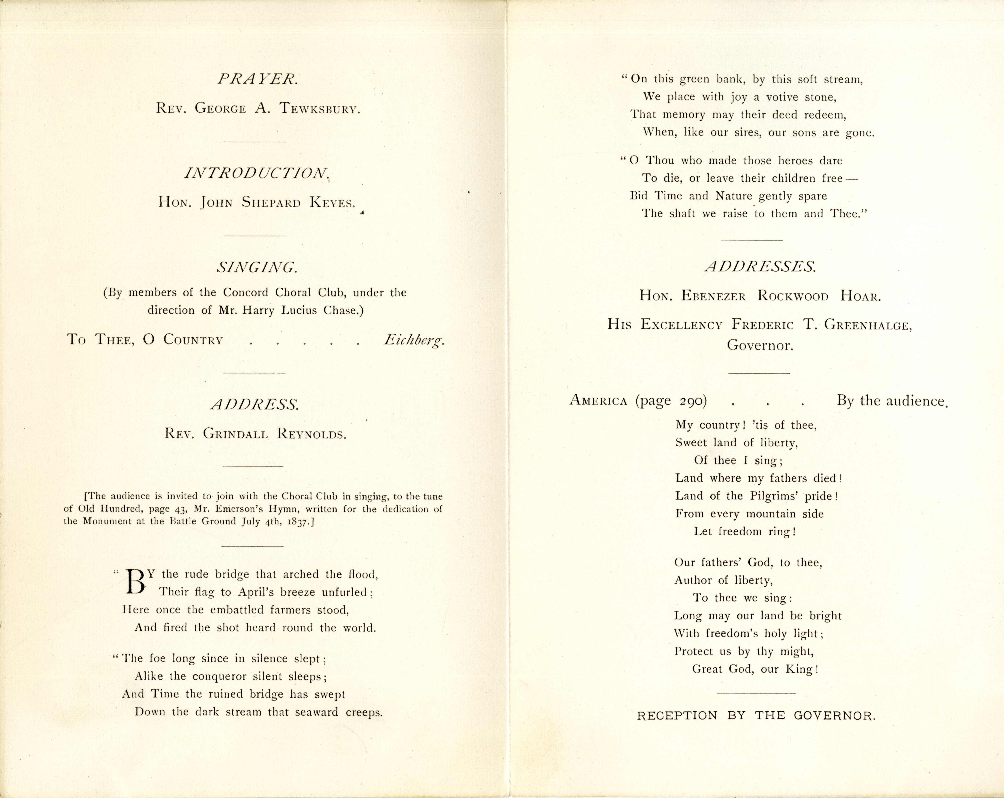 Town of Concord, “Event Program (1894),” William Munroe Special Collections at the Concord Free Public Library, accessed December 15, 2025, https://www.sc.concordlibrary.org/items/show/5432.